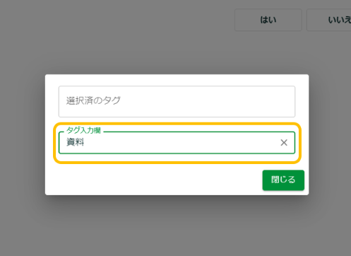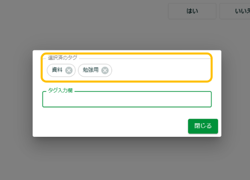 入力した言葉がタグとして登録され、選択済のタグ欄に表示されます。タグは複数登録できます。
