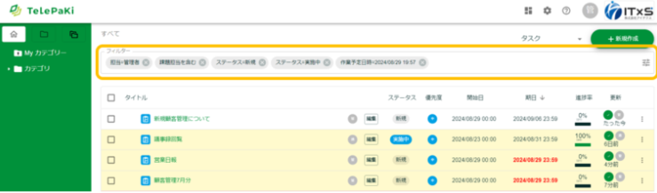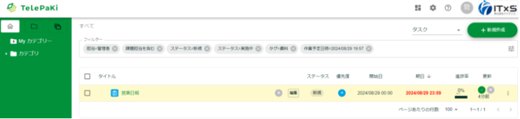 タグが紐づけられたタスクが表示されます。