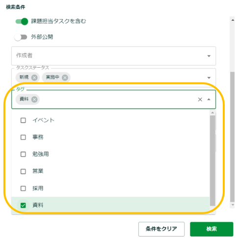 タグを使い、タスクを検索する