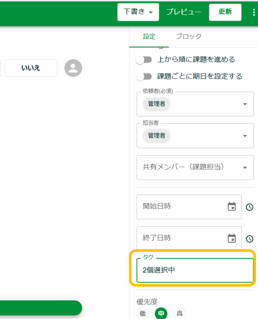 これで、タスクにタグが紐づけられました。