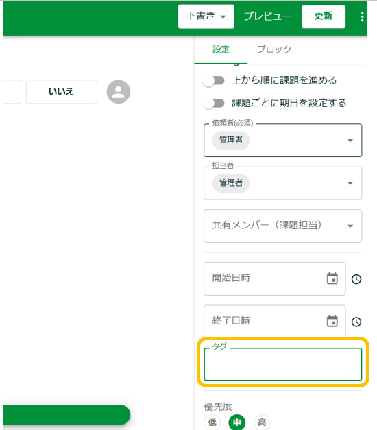 タグは、タスクを検索する際のキーワードとして活用できます。ここでは、タグの作成方法をご説明します。
