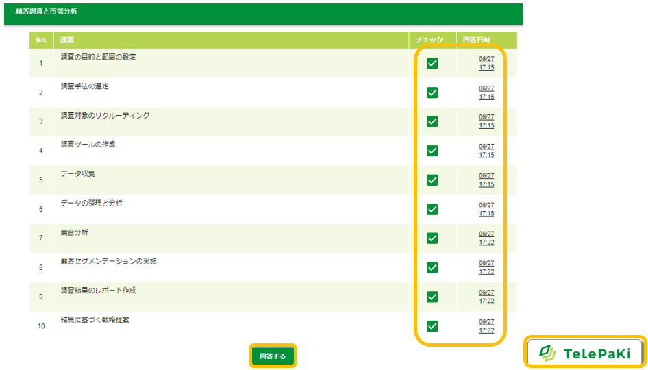 回答完了の確認をする