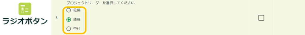 子ブロックの枠外をクリックすると、ラジオボタンとなります。