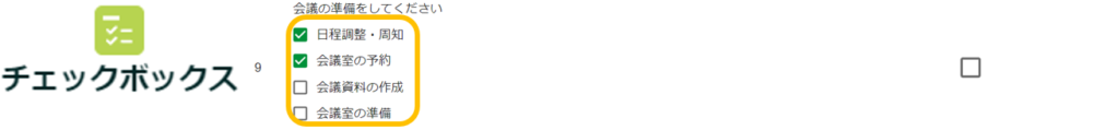 子ブロックの枠外をクリックすると、チェックボックスとなります。