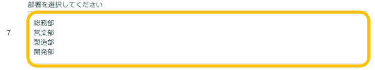 単一選択の項目を追加します。選択項目を改行で区切り、入力してください。