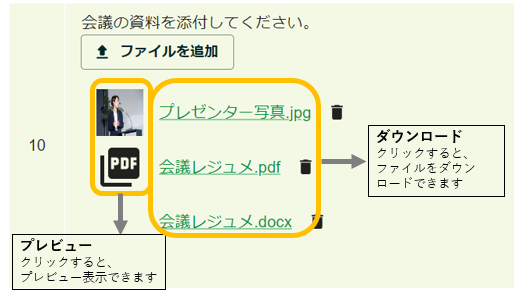 ファイルアップロードの項目を追加します。アップロードできるファイルは10MB以下で、PDF、画像、ワード含む全てのファイルです。