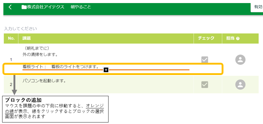 - それぞれの課題またはブロックをクリックすると、ブロックの編集と削除ができます。