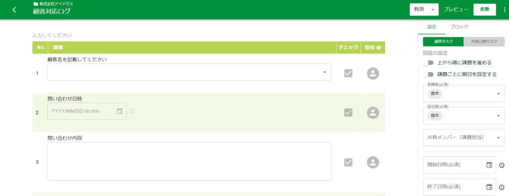 タスク作成をクリックすると、タスクの編集画面が開き、そこでタスクを作成できます。
