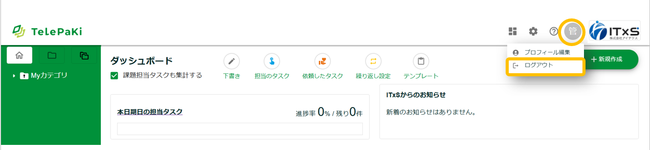 ダッシュボードからアカウントを選択し、ログアウトを選択します。