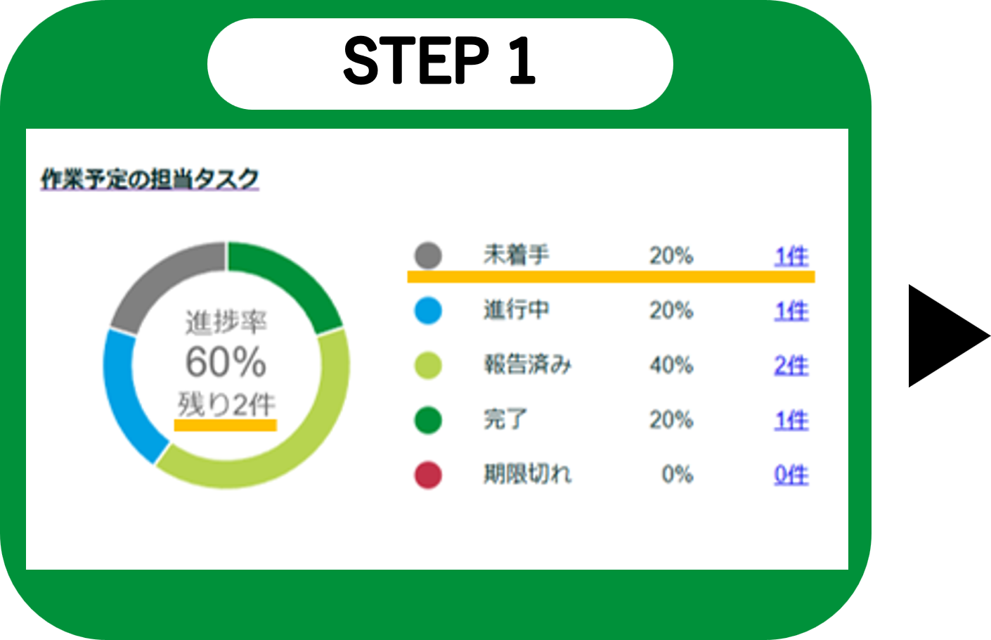 担当者がタスクを報告すると、通知、ダッシュボードで気付きます。問題ないときは確認済みに、差し戻しのときはコメントをして実施中に戻しましょう。