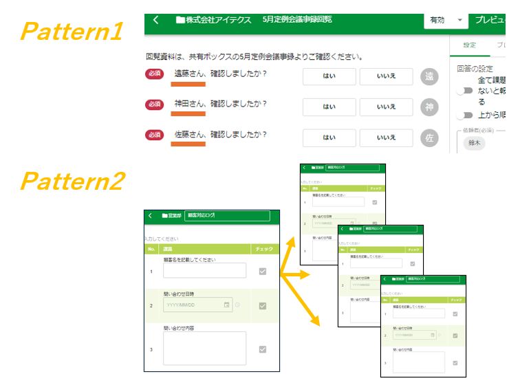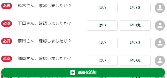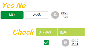 報告は作業が完了したらクリックするだけ。チェックを入れると、回答者と回答時刻が打刻されます。
