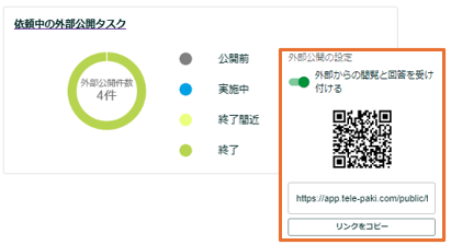 作成したタスクを、テレパキを利用されていない方にもシェア。タスクを依頼して、ログインなしで回答が可能です。